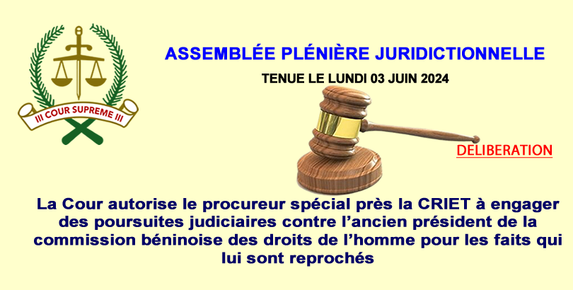 La Cour suprême du Bénin autorise le procureur spécial près la CRIET à engager des poursuites judiciaires contre