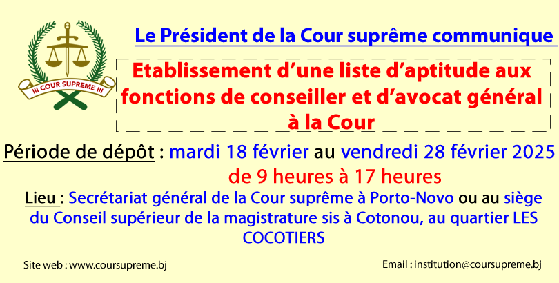 Conformément aux dispositions des articles 5, 6, 7 et 8 de la loi n°2022-11 du 27 juin 2022 portant statut des magistrats